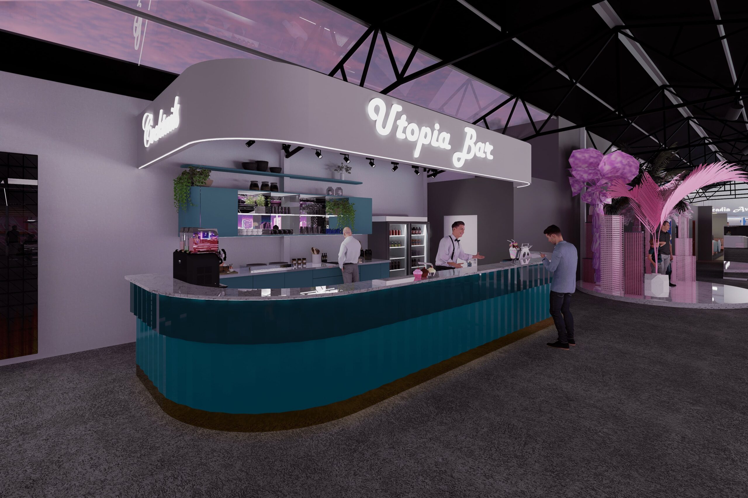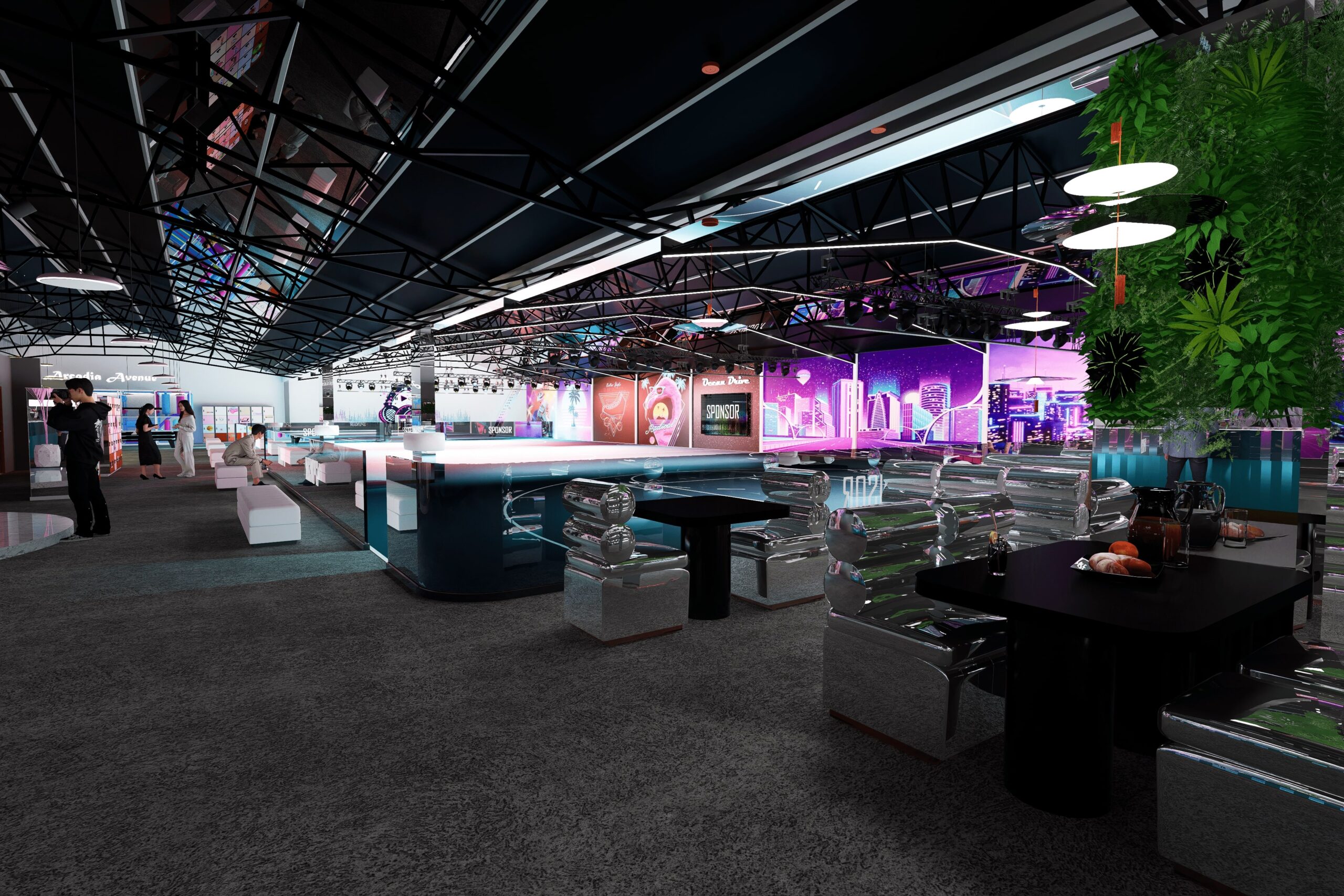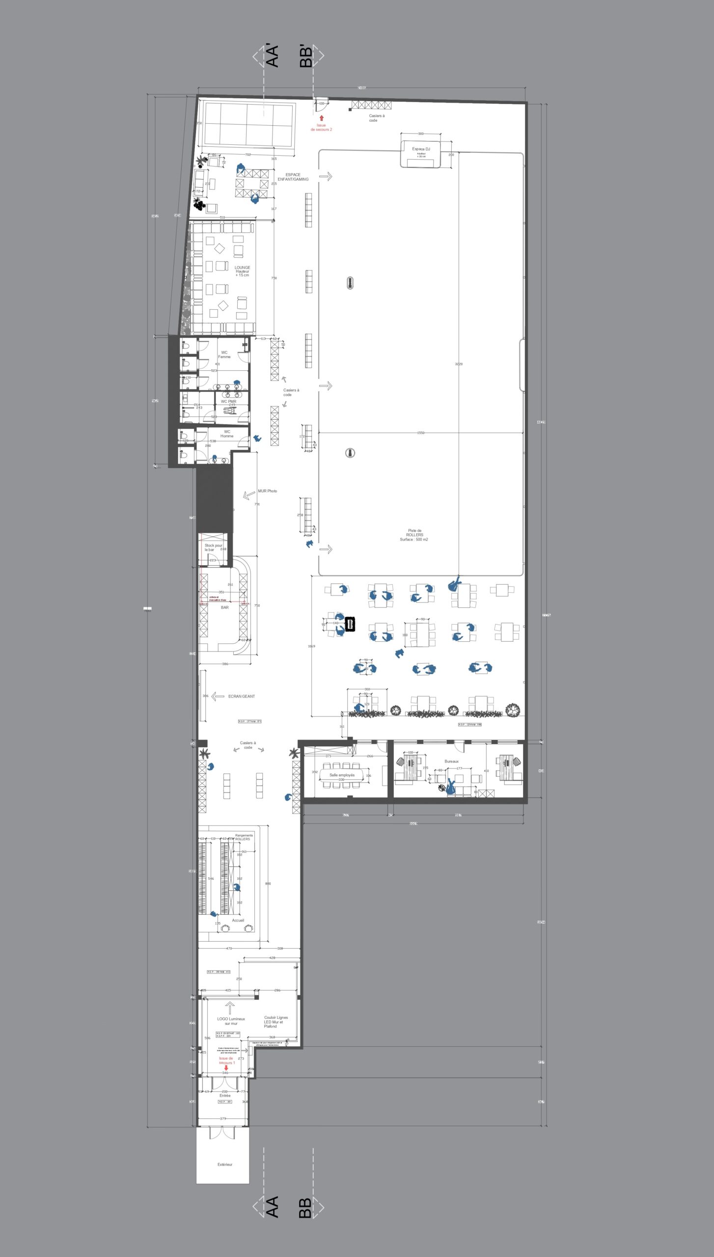 Caractéristiques principales • Accueil chaleureux • Bar branché • Bureaux organisés • Piste de roller spacieuse • Lounge confortable • Restauration variée • Espace enfants sécurisé • Mobilier sur mesure